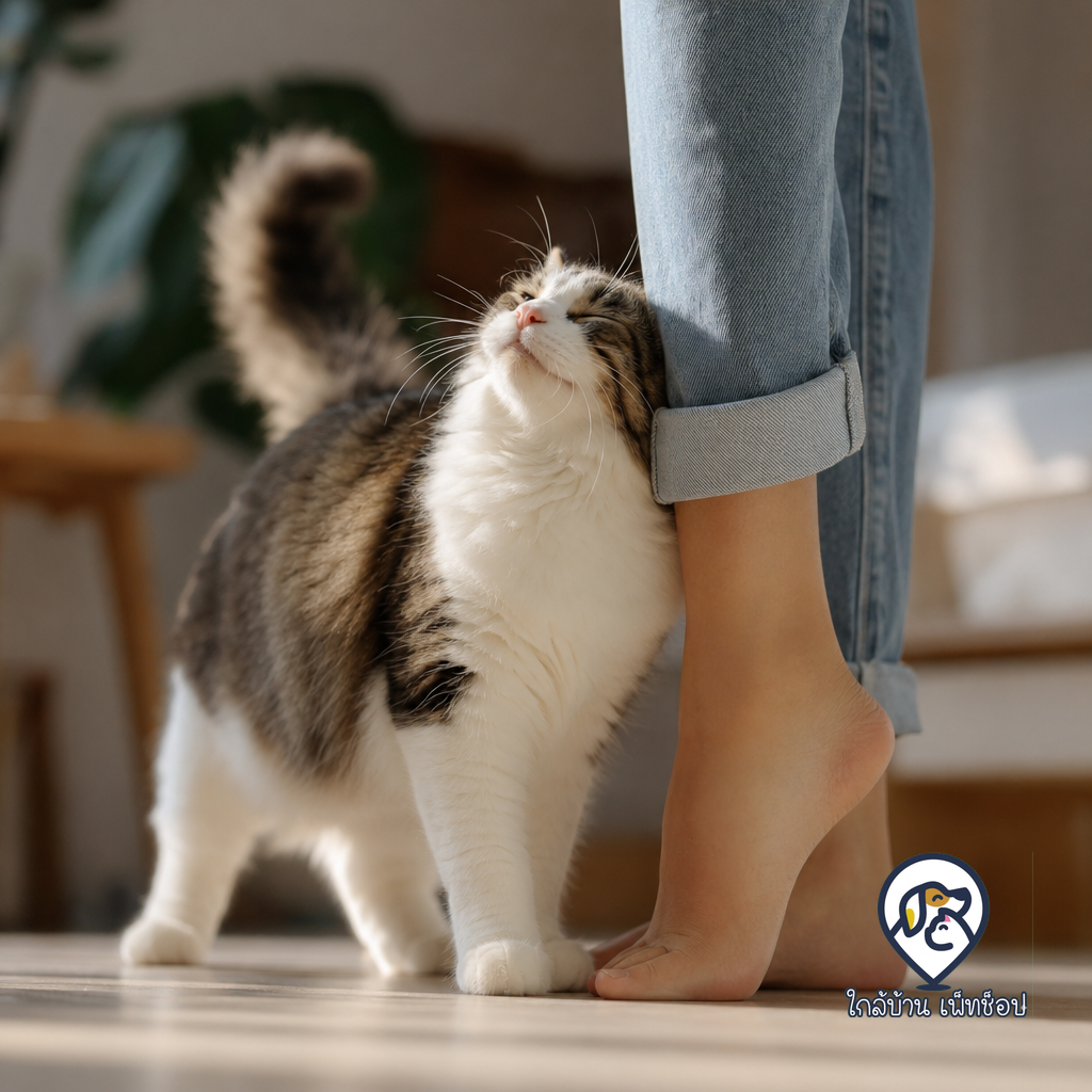 💡 เคล็ดลับจากใกล้บ้าน PetShop: เมื่อน้องแมวมาถูขา อย่าเพิ่งรีบหลบหรือเดินหนีนะคะ ลองนั่งลง แล้วลูบหัวหรือใต้คางเบา ๆ ตอบแทนความรักน้อง จะช่วยเสริมสร้างสายสัมพันธ์ระหว่างคุณกับน้องแมวได้ดีเลยค่ะ 🥰